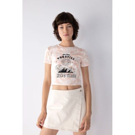 Simple Crop Fitted Short Sleeve T-Shirt – Pink
