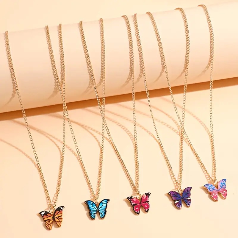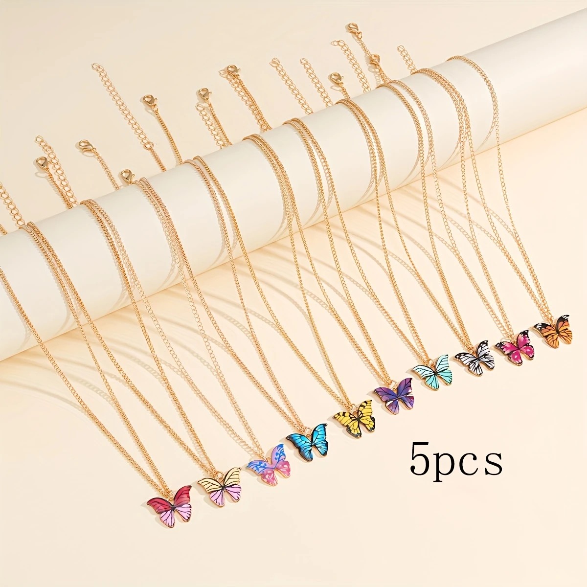 A Set of 5pcs Y2K Style Colorful Butterfly Pendant Necklaces, Perfect for Everyday Wear, Gatherings with Friends And Family, Casual Outings, And Gifting
