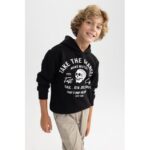 Boy Casual New Regular Fit Hooded Long Sleeve Knitted Sweat Shirt – Black