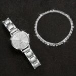 Home Accessories Jewelry Elegant Ladies Quartz Watches And Bracelet Suits-Round Zinc Alloy Case, Stainless Steel Strap, Casual Round Simulation Dial with Steel Band, Shock-Proof Movement