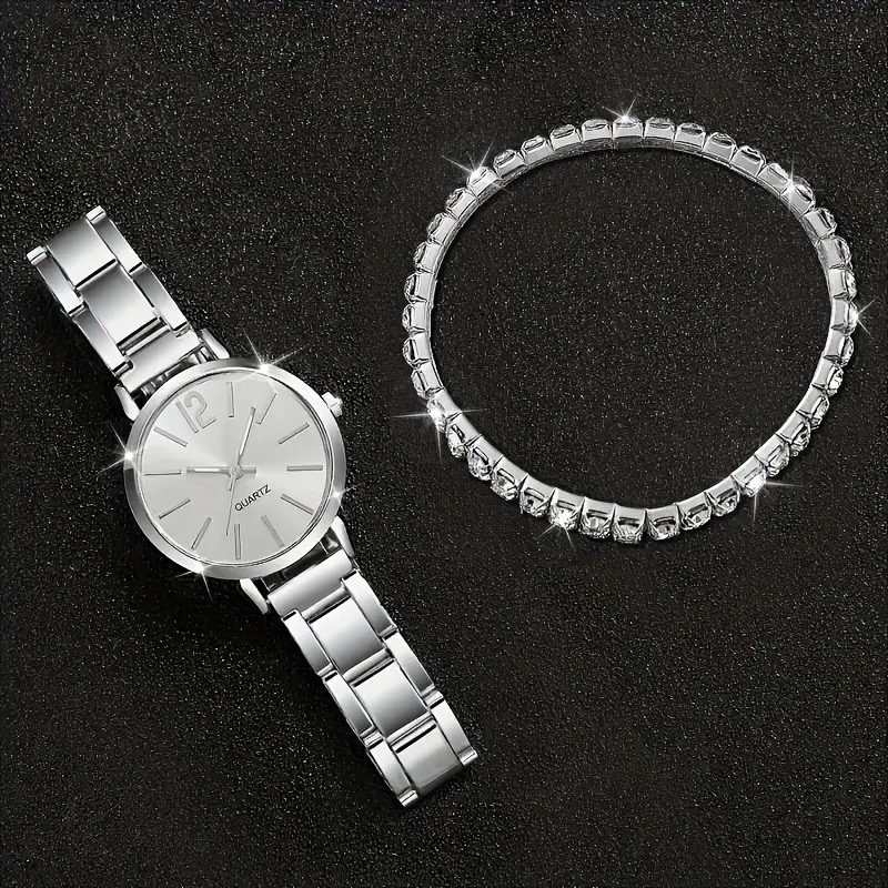 Elegant Ladies Quartz Watches And Bracelet Suits-Round Zinc Alloy Case, Stainless Steel Strap, Casual Round Simulation Dial with Steel Band, Shock-Proof Movement