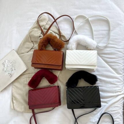 Vintage Style Faux Fur Single Strap Handbag with Zipper Closure and Polyester Lining