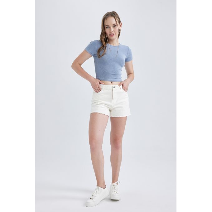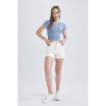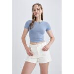Woman Crew Neck Knitted Short Sleeve T-Shirt