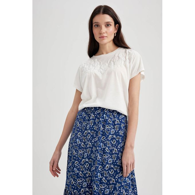 Woman Loose Fit Knitted Short Sleeve T-Shirt