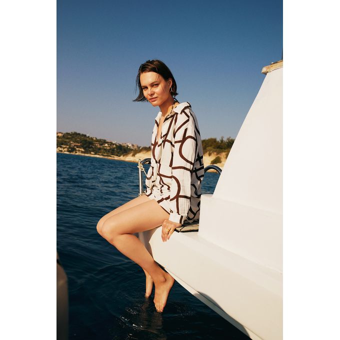 Woman Relax Fit Short Sleeve Woven Shirt -Multi