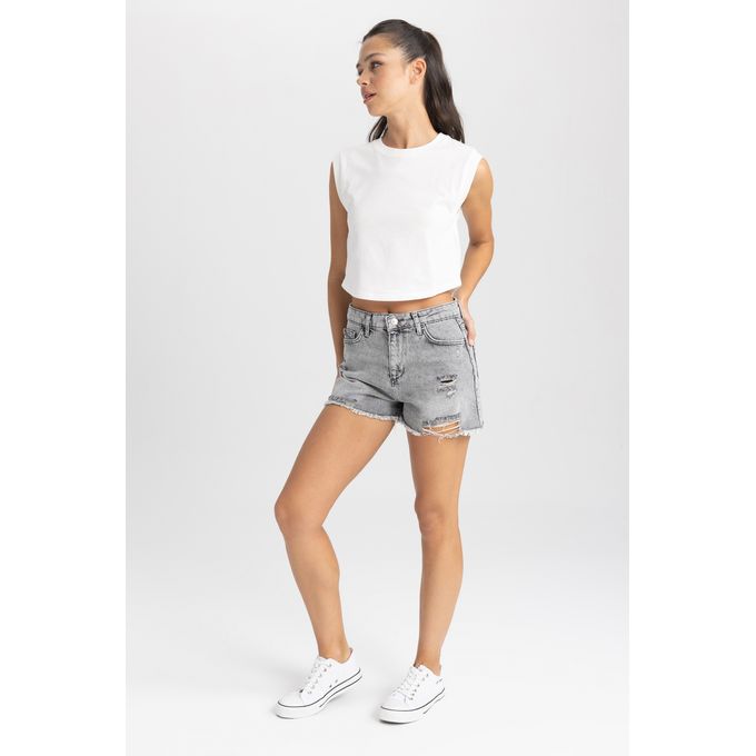 Woman Crew Neck Knitted Short Sleeve T-Shirt – Ecru