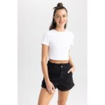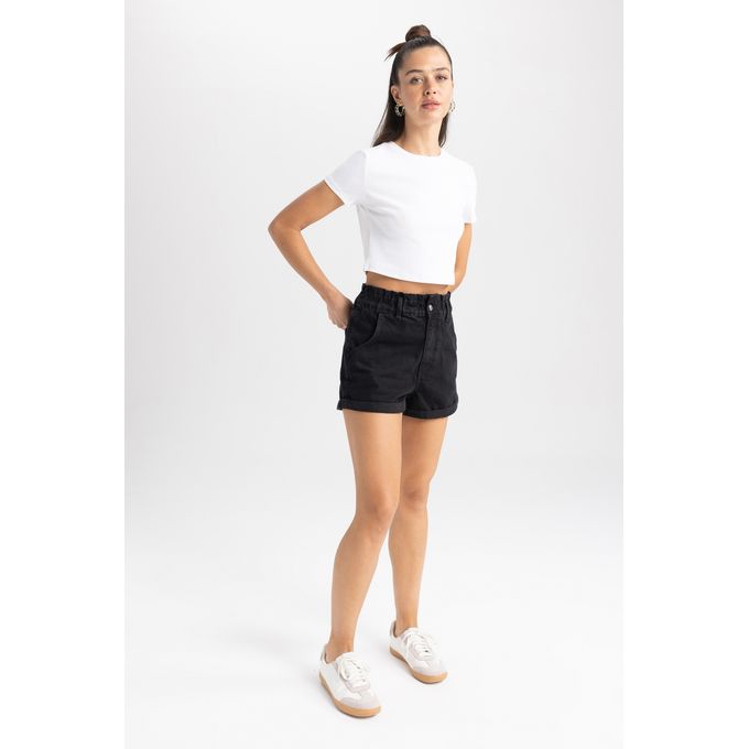 Woman Special Collection Paperbag Denim Short – Black