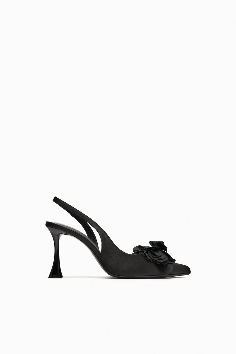 ZARA FLOWER DETAIL SLINGBACK HEELED PUMP IN BLACK